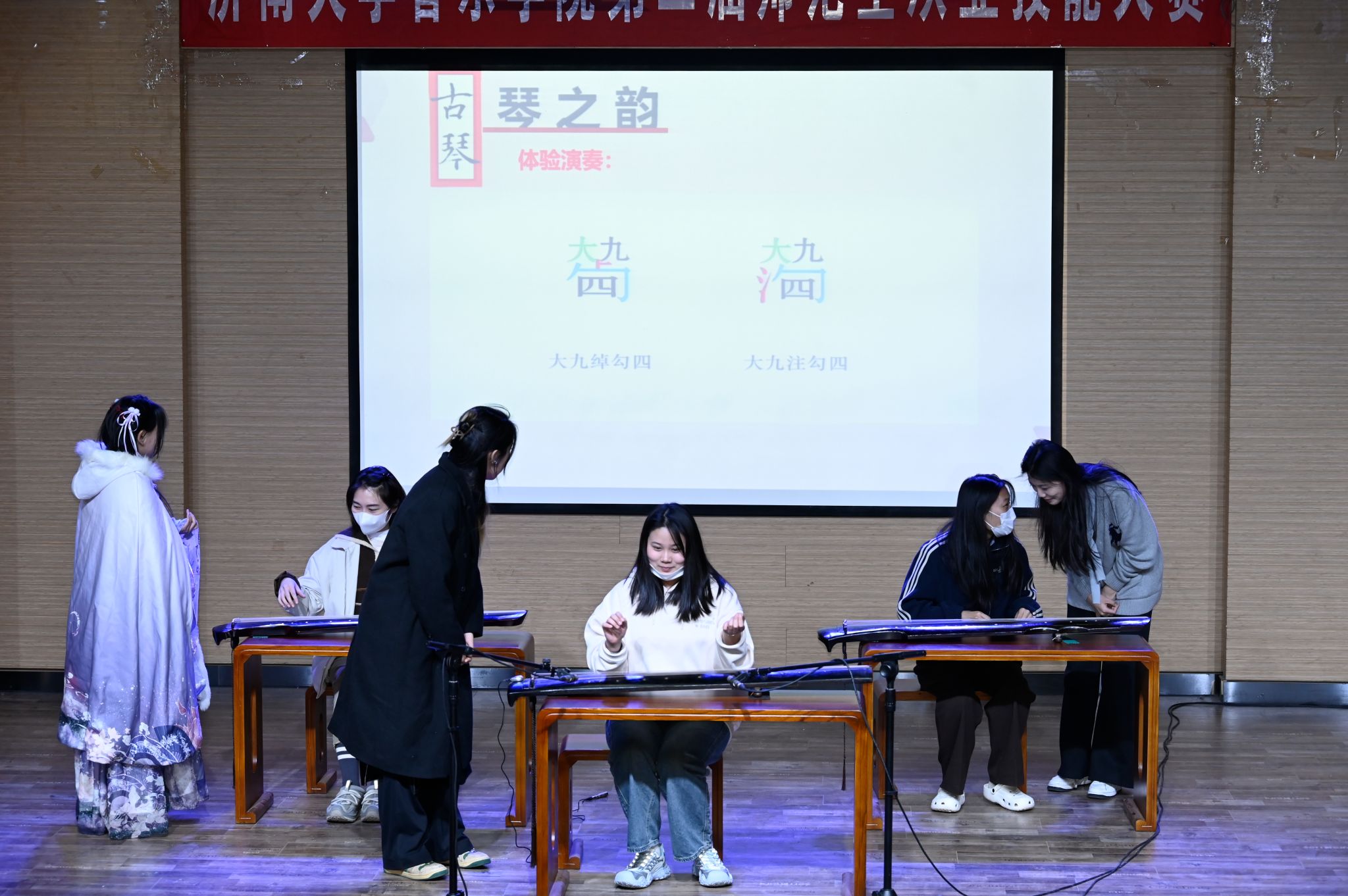 2025年4月2日,齐鲁音乐文化讲坛2025年第一期——”古琴之器与技”主题讲座在2教101成功举行,奏响了学校美育新乐章。此次讲座由济南市非物质文化遗产古琴斫制技艺代表性传承人李科担任主讲,张馨怡、薛英和郭玉芬老师的独奏、李艺馨和袁亦木的合奏倾情加盟,共同为观众奉献了美育盛宴。来自香港三级片