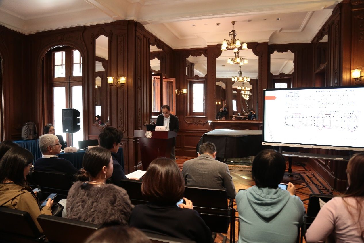在主题发言第二场中,卞兆裕以汉语和日语两种系出同源的语言为基础,分析并研究二者存在的一些共同点,汉语在格律、韵律方面如何对日语产生了影响,并逐渐演变成当代日语,为此还从两国都各自视为的诗歌总集《诗经》与《万叶集》出发,将二者的诗歌分别置于有相同或相似格律、韵律的西方调性音乐中进行比较。卞兆裕认为,二者虽存在很多类似的特点,但汉语的多样性要远比日语来的多,因此两者也有着不同的路线轨迹发展。