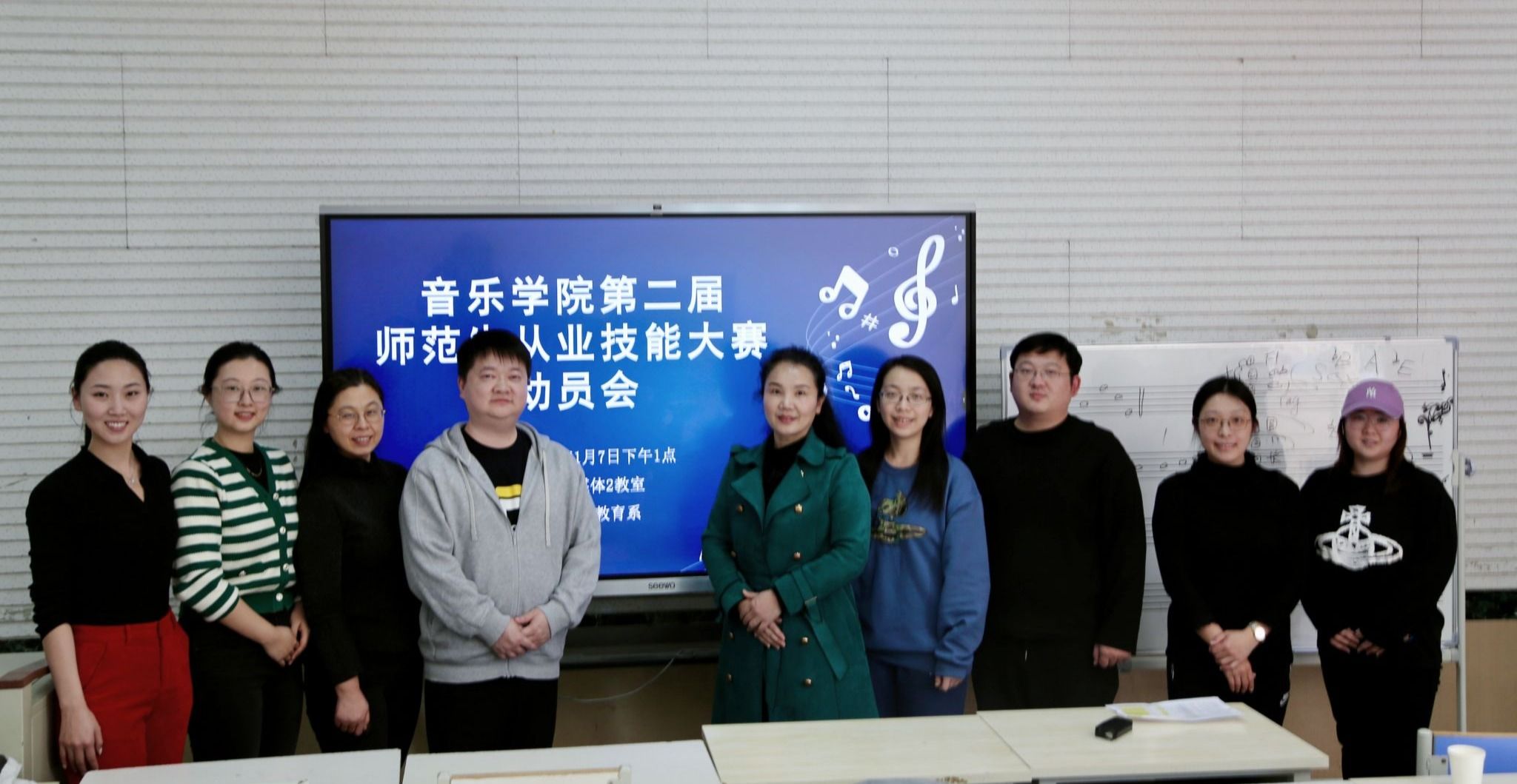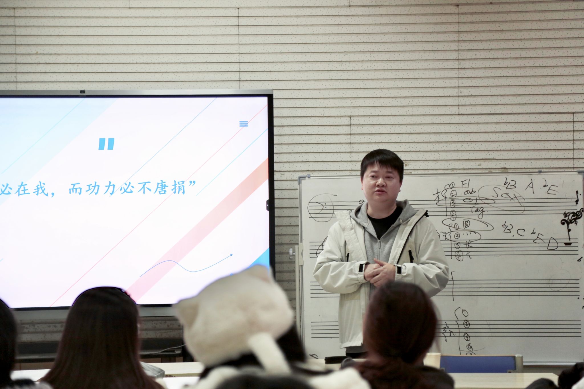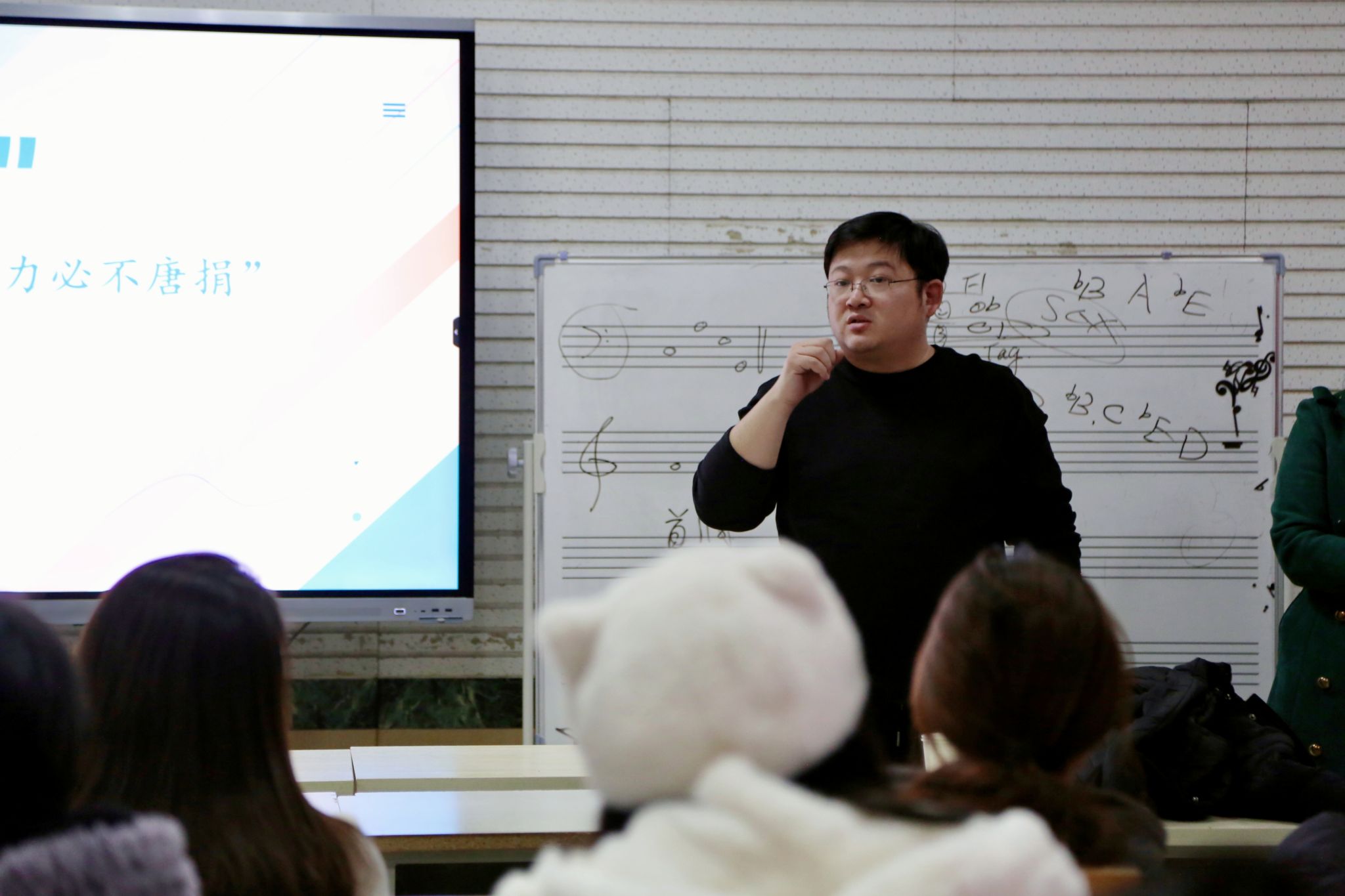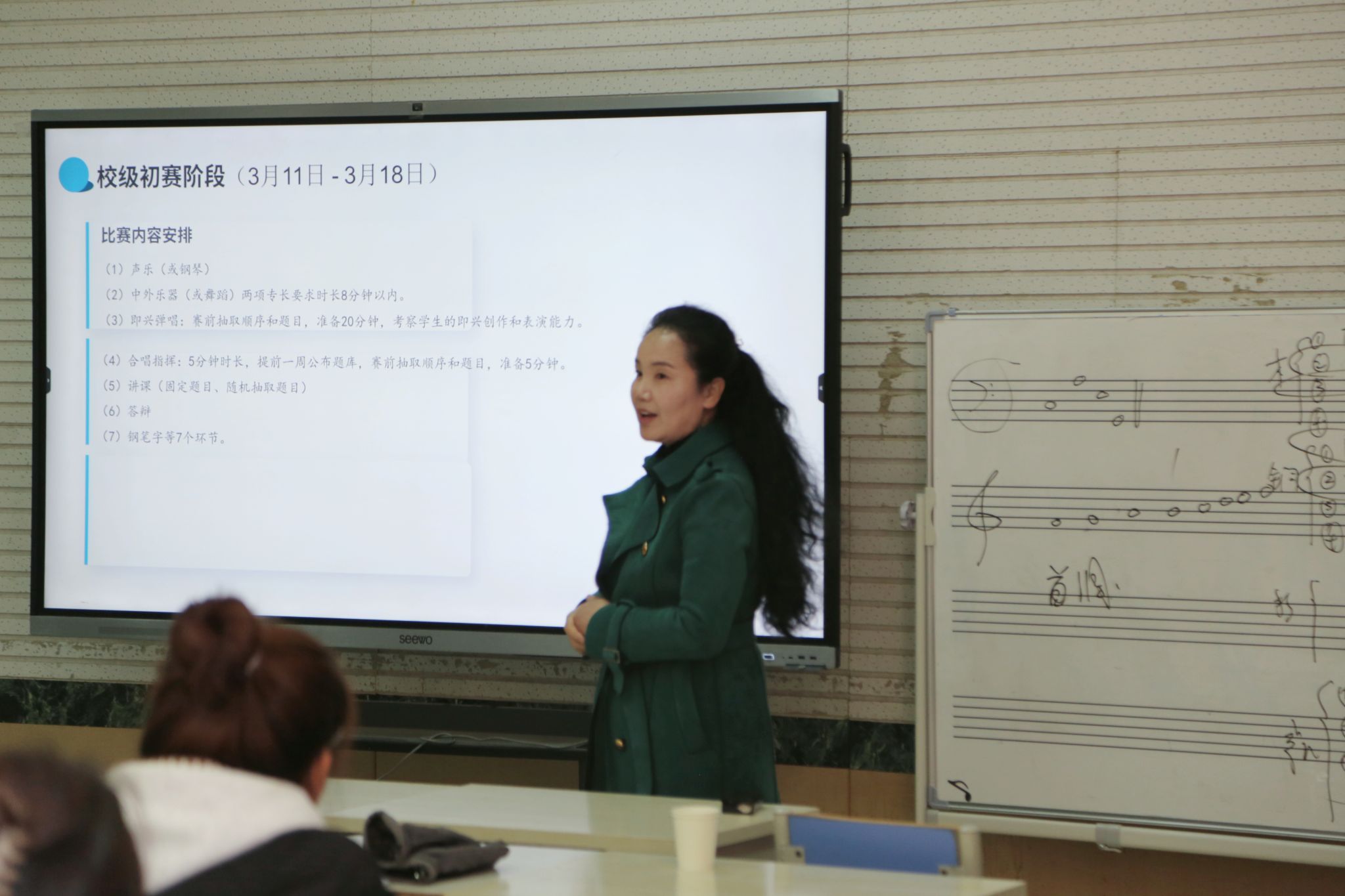 第二届师范生从业技能大赛动员会。动员会由音乐教育系主任杨瑞教授担纲主讲,大赛相关指导教师和2022级全体音教系师范生共同参与。