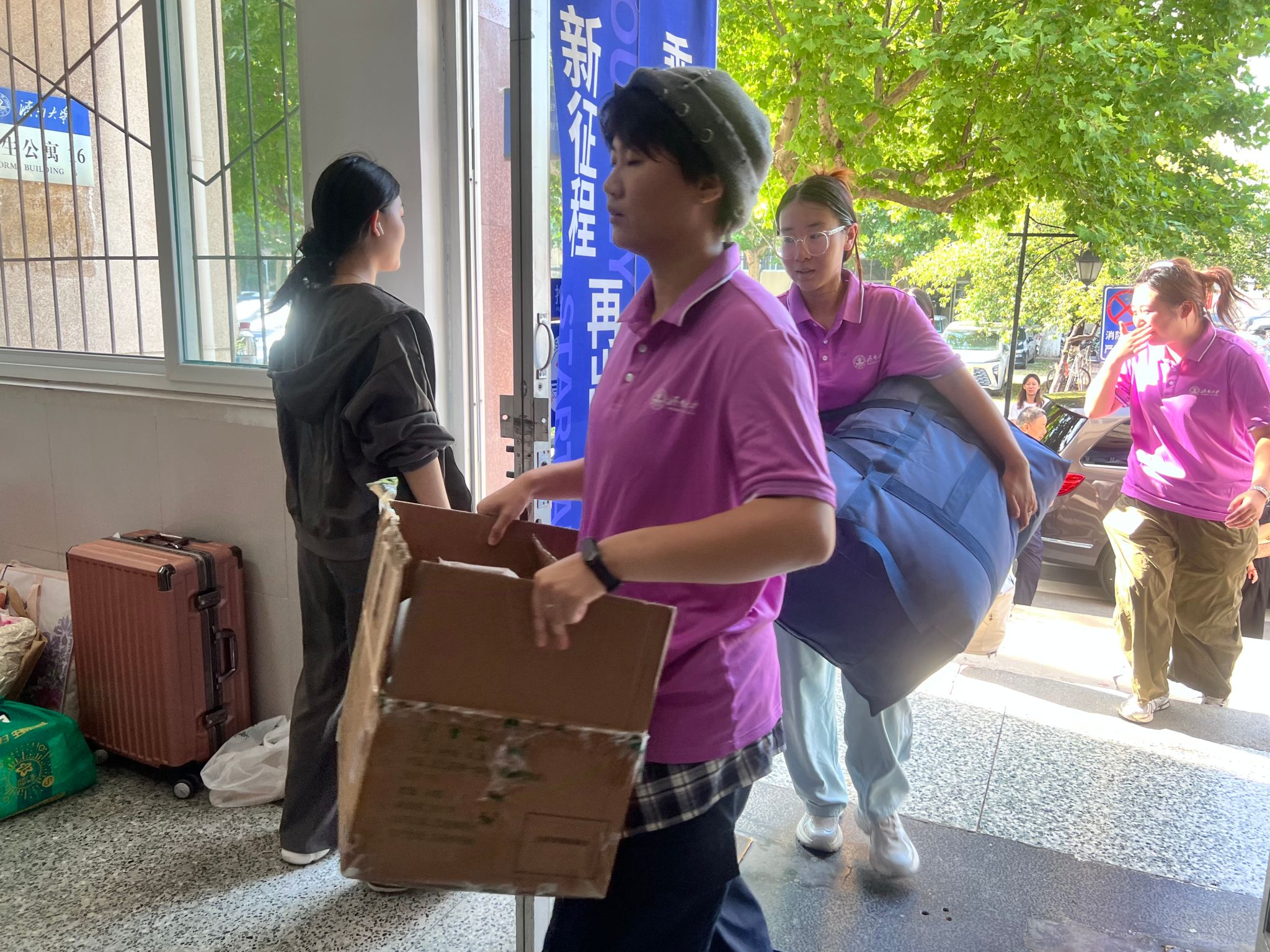 2024级音乐教育专业的许佳卉同学额头上渗着汗珠,却依旧干劲十足。她一边帮新生搬行李,一边笑着说:“去年我来报到时,学长学姐也是这样帮我的,不仅帮我搬行李,还陪我熟悉校园,那种温暖我一直记着。今年能成为志愿者,把这份心意传下去,特别有意义。”在他们的忙碌中,新生们的不安渐渐消散,脸上多了几分安心与踏实。
