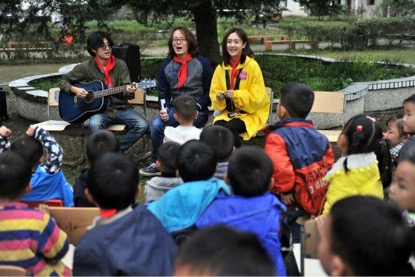 现代音乐系主任、《丁香花》演唱者唐磊教授携学生牛东腾,知名演员刘芸、暖流公益计划发起人邓飞赶赴蕲春参加到本次爱心探访公益活动。这次蕲春县75所贫困学校的师生们成为首批受益者。本次活动,大家把由帽子、围巾和手套组成的温暖包和学习用品带给山区的孩子们。唐磊老师还同其他志愿者一起陪孩子们开心地做起了游戏,并教大家唱歌。