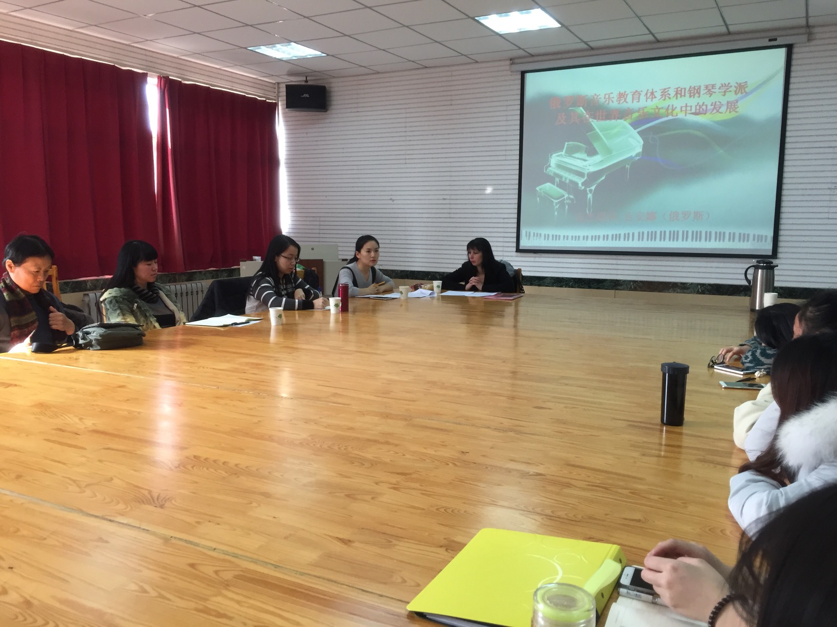 此次讲座的主题是《俄罗斯音乐教育体系和钢琴学派及其在世界音乐文化中的发展》,由王冰老师担任翻译。围绕讲座的主题,从俄罗斯钢琴学派的起源及发展、演奏方式、教学方法和创作等方面都做了详细的阐述,指出俄罗斯钢琴学派对世界钢琴演奏发展产生了深远的影响,为世界钢琴乐坛输送了大批的具有影响力的演奏大师,如普罗科菲耶夫、斯克里亚斌、霍洛维兹等。讲座结束后,吉安娜教授又给几位学生上了公开课。她为同学们认真讲解,同学们演奏过程当中,教授在演奏技巧、连贯性、指法等方面进行指导,并做示范,对同学们出现的问题逐一解决,台下的同学认真听讲,并做好听课笔记。经过专家的指点后,学生演奏效果也有明显的改善,现场气氛十分活跃。
