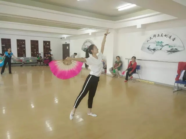 最后一天上午,一边文化馆的舞蹈房里志愿者教授阿姨们新的广场舞《水墨丹青》,在阿姨们积极认真的配合下超额完成学习任务。另一边振兴街的舞蹈房也在争分夺秒的学习新的舞蹈,在志愿者的指导下,通过规范动作及编排队形等,排出了完整的扇子舞成品《共筑中国梦》。下午的文化馆内是幼儿舞蹈班的课程教学,志愿者为小朋友们安排了基本功训练,随后又教授小舞蹈《掀起你的盖头来》。
