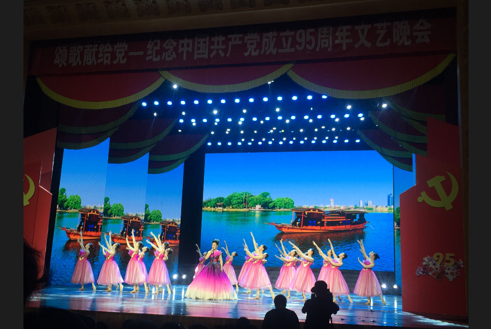 舞蹈系学生参演的歌舞《南湖红船》优美大气,展现了“一大”精神,是铸就在中华儿女心中的永不褪色的精神丰碑;歌舞《江山》,磅礴激昂,展现了祖国壮丽山河,反映出在党的领导下,人们奋发向上,锐意进取的昂扬斗志。