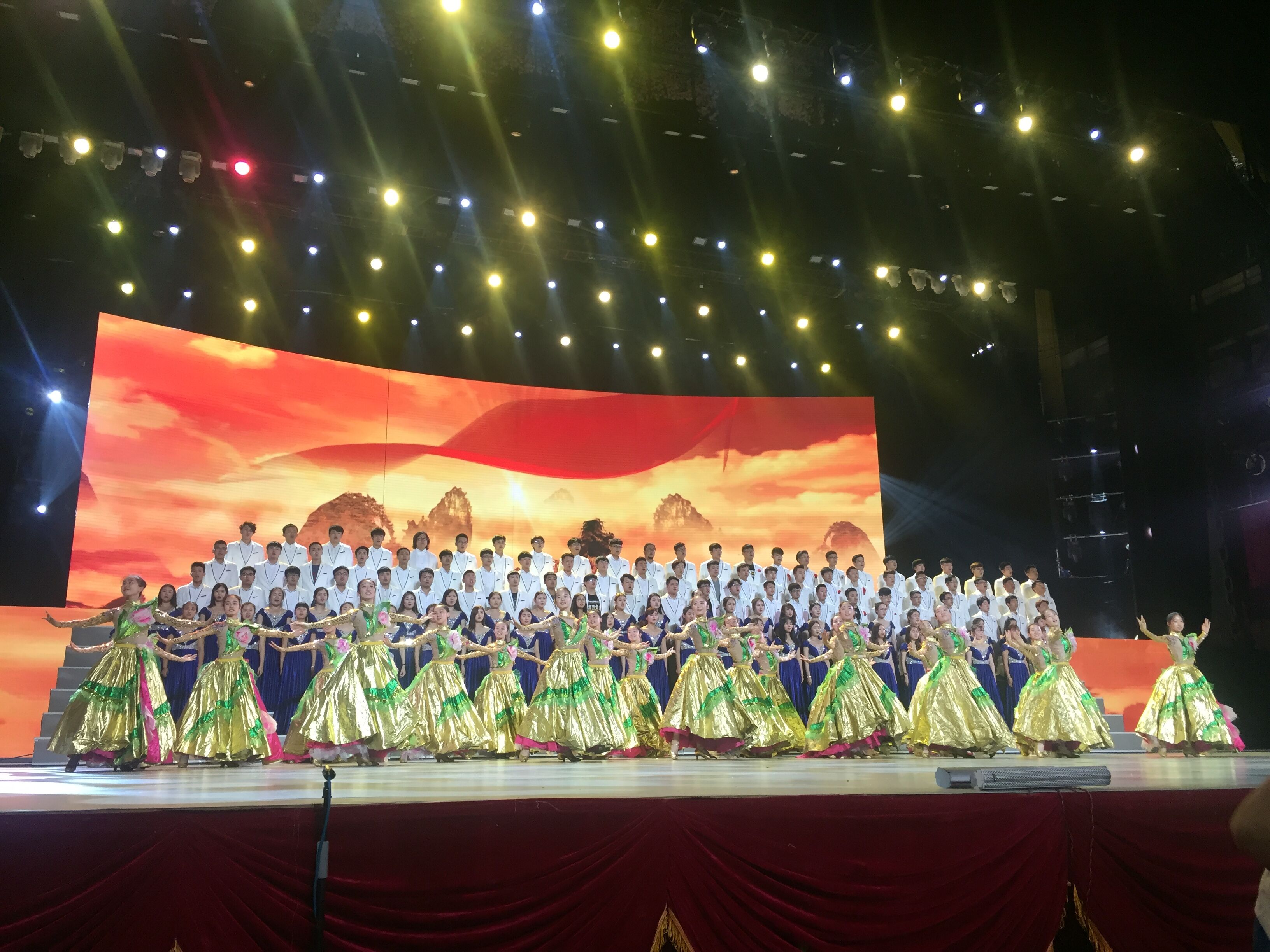 舞蹈系师生参演的歌舞《这条道路》气势磅礴,展现了革命英雄对祖国未来的信心与决心;肩上芭蕾《梦之旅》用优美的舞姿,表现了中国共产党对现代化中国的憧憬与希望;歌舞《向着伟大梦想》慷慨激昂,表现了中国共产党重整行装领导人民向着伟大的中国梦再出发。声乐系学生参演了晚会全部合唱节目,晚会在气势恢宏的《没有共产党就没有新中国》的合唱中结束。晚会现场激情澎湃,高潮迭起,彰显老党员的奉献和付出,展现中国共产党坚定理想与信念,走出一条光明的中国道路,一代代中国共产党人奉献青春和热血,凝聚成中国民族的钢铁脊梁。