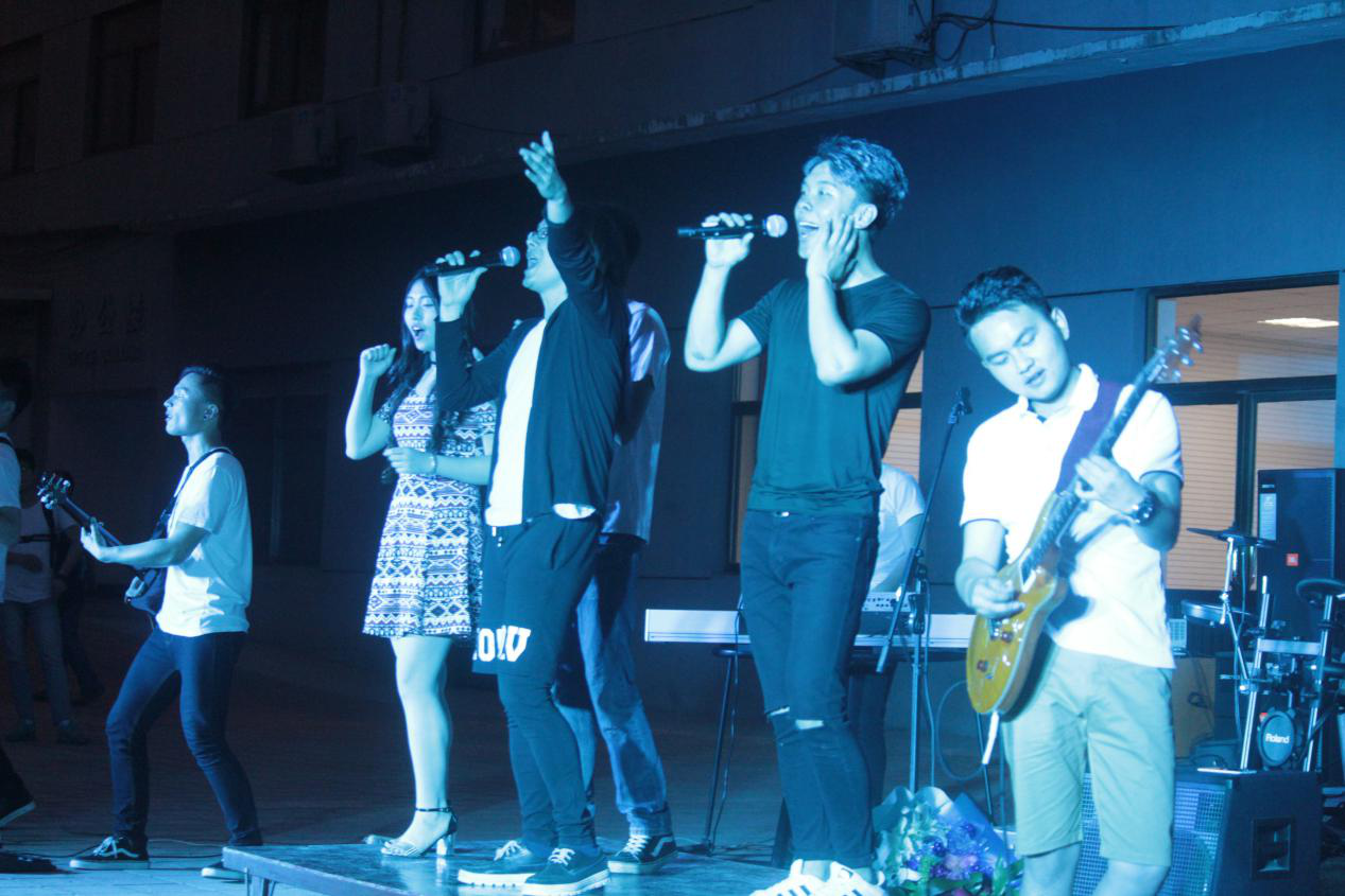 音乐会一开始,磁性的男声独唱《Lemon Tree》便点燃了全场的气氛,那欢快的气氛,深情的演唱博得了在场师生的阵阵掌声。紧接着,各种节目轮番登场,异彩纷呈,魅力四射。吉他弹唱《成都》、《我们的时光》将音乐会推向了另一个高潮,演出的同学拨弹吉他的样子与音乐完美融合,感染着在场的观众。高亢的女声独唱《被驯服的象》、《倒带》时尚而动感的旋律将音乐会推向第二个高潮,在别样的曲风中,现场再次沸腾。将现场气氛推上顶峰的是SWING ENERGY乐队,两把电吉他在吉他手中迸发出青春的激情,爵士鼓稳重的鼓点,贝司厚重的低音以及键盘清澈的旋律,配上主唱富有磁性的声音,赢得了在场所有观众的尖叫呐喊。音乐会的最后,现代音乐系的唐磊老师与所有演员同台演唱一首《别忘了为什么出发》,整个音乐会落下帷幕。