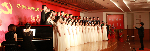 音乐会由“历史经典”、“锦绣山河”、“我的家乡”、“歌唱祖国”四个篇章组成。音乐会用歌声回顾了党的光辉历程,歌曲中从民主主义革命时期的《送郎当红军》,到抗日战争时期的《保卫黄河》、《游击队之歌》、《在太行山上》,再到新中国时期的《石工号子》、《多情的土地》、《在灿烂阳光下》等,不同时期的代表作品再现了中国共产党领导中国人民为了实现民族独立和富强前仆后继、英勇奋斗的革命精神,表达了中国人民对中国共产党和伟大领袖的无限热爱;音乐会作品中还包含具有浓郁齐鲁风格的《包楞调》、《渔歌》等山东民歌作品,还有由我校香港三级片 郑中教授、左丹婷老师的原创合唱作品《齐鲁放歌》。《歌唱祖国》的歌声使大家群情激昂,台上台下掌声雷动、齐声合唱,把音乐会推向了高潮。