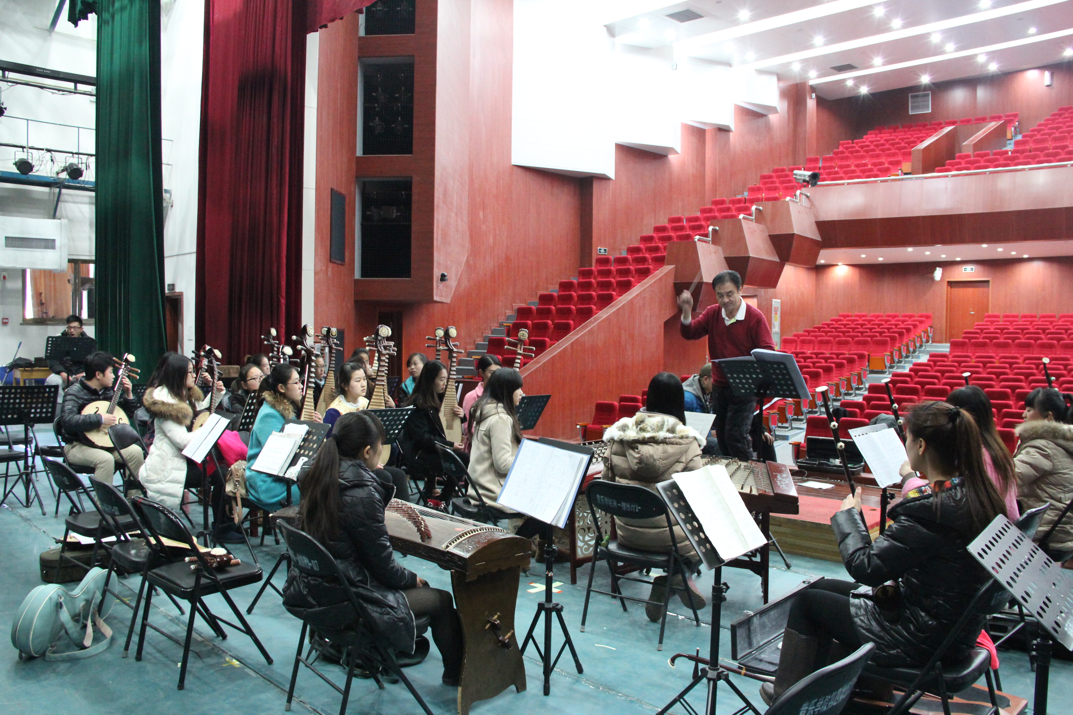 民乐系的同学组成的山东泉城交响乐团也于今日进行了密集排练,著名笛子演奏家曲祥与山东省前卫文工团副团长王天立担任本次音乐会的指挥,曲目在他们的指挥中充满了节奏与动感,乐团的每一个团员都极其认真努力,每个人流露出的忘我的神情,动听的旋律弥漫在整个礼堂里,余音袅袅,不绝如缕。