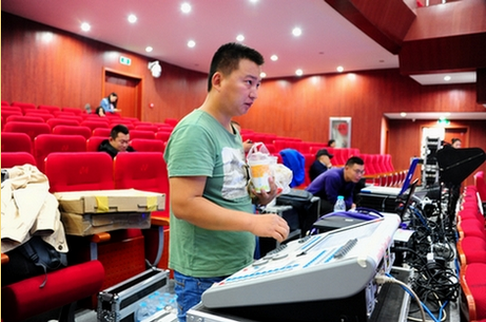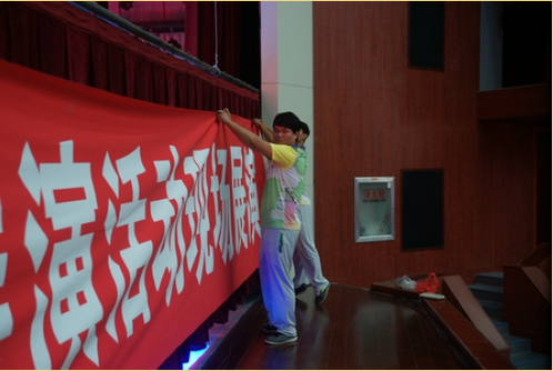 现在是9月9日上午9点30分,距大艺展正式展演只剩半天时间,大礼堂内还在进行着紧张的排演。