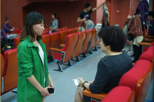 办公室副主任国迎春在百忙之中来到大礼堂了解演员们的排演情况,她听取工作人员的介绍后,对大艺展的工作提出了宝贵的意见和建议,希望各工作人员与志愿者们认真负责地完成任务,并对他们表示感谢。