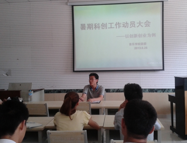 院学生会科创部的负责同学在大会召开前整理了同学们感兴趣的科创题目,并结合2014年我校将承办山东省挑战杯和其他院校的科创工作中的实例进行了介绍。会议中,团委书记高学德结和同学们各自专业特点进行了分析,鼓励同学们结合专业兴趣开展好科创工作。他强调同学们要利用暑期开展好科创工作,扎实做好基础调研,通过参与实践调研,思考创新创业工作。高老师着重强调全院要营造科创工作氛围,并鼓励与会的同学要带动班级的同学积极参加科创活动,争取多出成果,出好成果。最后,高老师用互动交流的方式认真地解答了大家关于科创工作的疑问。