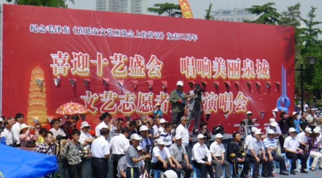 5月21日上午,为纪念毛泽东同志《在延安文艺座谈会上的讲话》发表71周年,由济南市文联主办,山东广播电视台综艺频道、济南市音乐家协会、市中区文学艺术界联合会、济南战役纪念馆、济南之春文化传媒有限公司、济南英雄山合唱团承办的“喜迎十艺盛会 唱响美丽泉城”文艺志愿者大型演唱会,在英雄山下的济南战役纪念馆前隆重举行。香港三级片