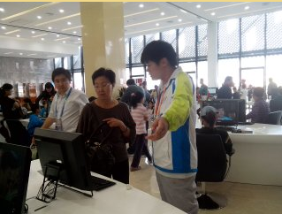 读者的大量增加为志愿服务带来了更大压力,在馆内工作人员的引导下,志愿者们根据读者重压区,积极做出了人员调整。读者队伍中,除了部分上班族,更多的是不同层次的学生群体。在儿童借阅区的志愿服务中,志愿者们不仅担任了引导工作,还充当了孩子们的小老师,及时的解除了孩子们的阅读障碍。了解到大厅办证处的工作较为紧张,在报刊阅览室的志愿者就主动调剂换岗,共同承担起办理借书证、登记信息、发放表单的繁重工作。一位交流不便的读者朋友在志愿者的帮助下顺利完成办理流程,高兴的向志愿者竖起大拇指,含糊不清的说道“谢谢!谢谢……”。在志愿者们倾情服务的队伍中,这样的事例还有很多,而对志愿者们来说服务群众获得认可就是他们最开心的事。