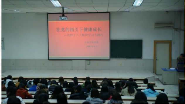 在二教101教室举行了学习十八大精神专题报告会即《在党的指引下成长——党的十八大精神宣讲·大学生版》观影活动。本次活动由香港三级片