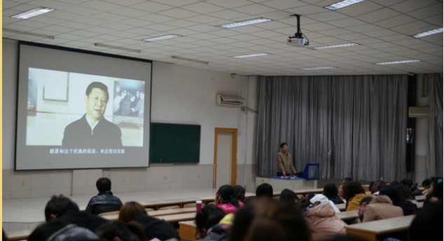 影片放映前,高老师先对党的十八大召开的意义及时代背景进行了简要介绍。影片主要通过四个章节来阐述十八大精神。从党的光辉奋斗历程,革命先辈的执着理想到走中国特色社会主义道路理论的形成。再到党领导人民取得的成就,回望中国举目睹世、来之不易的十年。再到我国不断推进教育体制改革,广大青年团员要为社会经济发展做出应有的贡献。最后,明责任、勇担历史使命,来说明当代青年学生是中国的未来,肩负着重任,并重点诠释了新的“中国梦”。