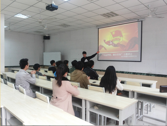 多媒体教室组织召开了“托起梦想,激昂青春”主题教育团会,出席团会的有器乐1202班辅导员朱孟斐以及该班全体成员。