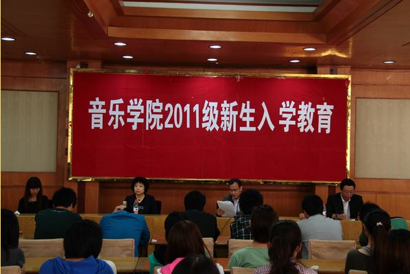 领导在师资的引进上下了大功夫,就是为了同学们在这里学到真正的东西,学到真正超值的东西。同学们一定要珍惜每一节课,珍惜每一次和老师学习的机会,使自己不断有新的好的收获。第四个幸运是:较为先进的办学理念。同学们来到学校后要把社会实践放在很重要的位置上,无论是声乐、器乐、舞蹈这样的专业课,还是视唱练耳、合唱指挥这样的综合理论课的考试,都要在舞台上检验。我们会提供给同学们多种舞台实践机会,来让同学们的专业水平得到最大限度的提升。第五个幸运是:同学们既能学到音乐表演专业的技能,又能囊括音乐学专业学生的知识。这样的培养模式对大家的要求就更加严格,所学的知识也更加全面,希望同学们抓住这样的学习机会,把自己的专业理论提高到一个新的更高的水平。随后,郑中院长又结合自身学习经历向新同学提出了三个要求:第一:学会独立。生活上需要独立,学习上更需要独立。我们最基本的独立本领就是我们能够自理,规划好自己的生活和学习,自己的事情自己做。走进大学校门就意味着你们不再是孩子了,要懂得自力更生,学会自己养活自己。第二点:学会沟通。同学们的生活和学习成长不是一个孤立的过程,实现这种健康成长需要在与外界的不断交流中积累和更新信息,包括学习和生活之道。只有这样,才能更好地实现自己的目标。第三点:认真上好每堂课。同学们带着父母辛勤挣来的学费来到学校,就是要学到需要的知识,我们的课程设置是环环相扣的,每一节课对同学们来说都非常重要,希望同学们在课堂上充分发挥主观能动性,尽最大可能地去学习,去吸收老师所教授的内容。