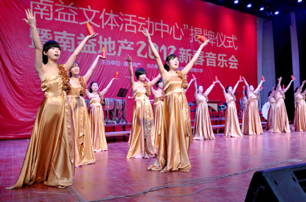 为莅临的嘉宾献上了南益地产2012年新春音乐会。整场音乐会以民族管弦乐为主旋律,同时辅以打击乐的巧妙配合,使乐曲时而“大弦嘈嘈如急雨”,时而“小弦切切如私语”,无限喜悦纵情释放,营造出了激扬澎湃的艺术效果。香港三级片