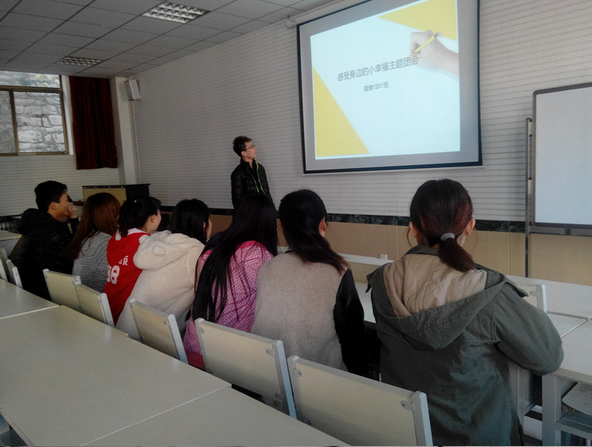 调律1201班在团支书的组织下在多媒体教室1举办了以“感受身边的小幸福”为中心的主题团会。全体同学积极参加此次的团会,整个教室笼罩在幸福之中。