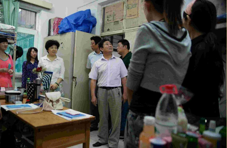 党委书记赵道会、院长郑中、党委副书记李超、副院长董智渊、王梅在学办主任高学德,新生辅导员朱孟斐的陪同下到宿舍看望2012级新同学。