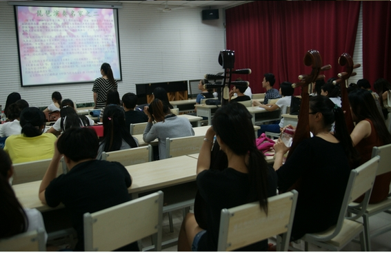 此次活动是“艺蕴人生”第一次正式展出。活动围绕主题“琵琶”从琵琶的渊源、材质、构造以及琵琶名家和名曲欣赏五个方面展开探讨。听众分别就木质琵琶和水晶琵琶的音色差异进行讨论。为了让大家充分了解琵琶的构造,主讲同学特意拿出琵琶现场给大家展示,并现场弹奏与听众进行互动。在名家名曲分析中,主讲人分别对刘德海、吴玉霞、杨靖三位琵琶名家做出详细的介绍,并引导听众积极参与进来。活动最后,主讲人还邀请13级器乐班的三位同学助阵,三位同学以娴熟的手法分别演奏名曲《十面埋伏》、《彝族舞曲》和《海清拿天鹅》(简称天鹅),为观众呈现出了一场关于琵琶的视觉和听觉盛宴。活动接近尾声时,主讲人还特意播放中央电视台“光荣绽放”中国十大杰出琵琶演奏家的精彩演出片段,希望可以鼓励琵琶爱好者敢于寻梦,勇往直前。