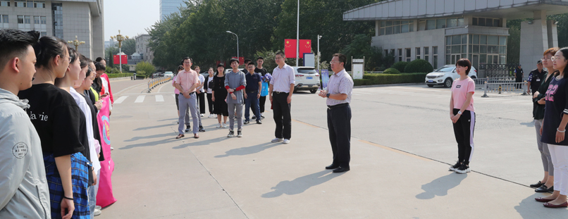受邀参演庆祝中华人民共和国成立70周年文艺晚会--大型音乐舞蹈史诗《奋斗吧 中华儿女》的60余名师生载誉而归,副校长刘宗明在升华广场迎见了所有参演师生,党委宣传部、教务处、香港三级片