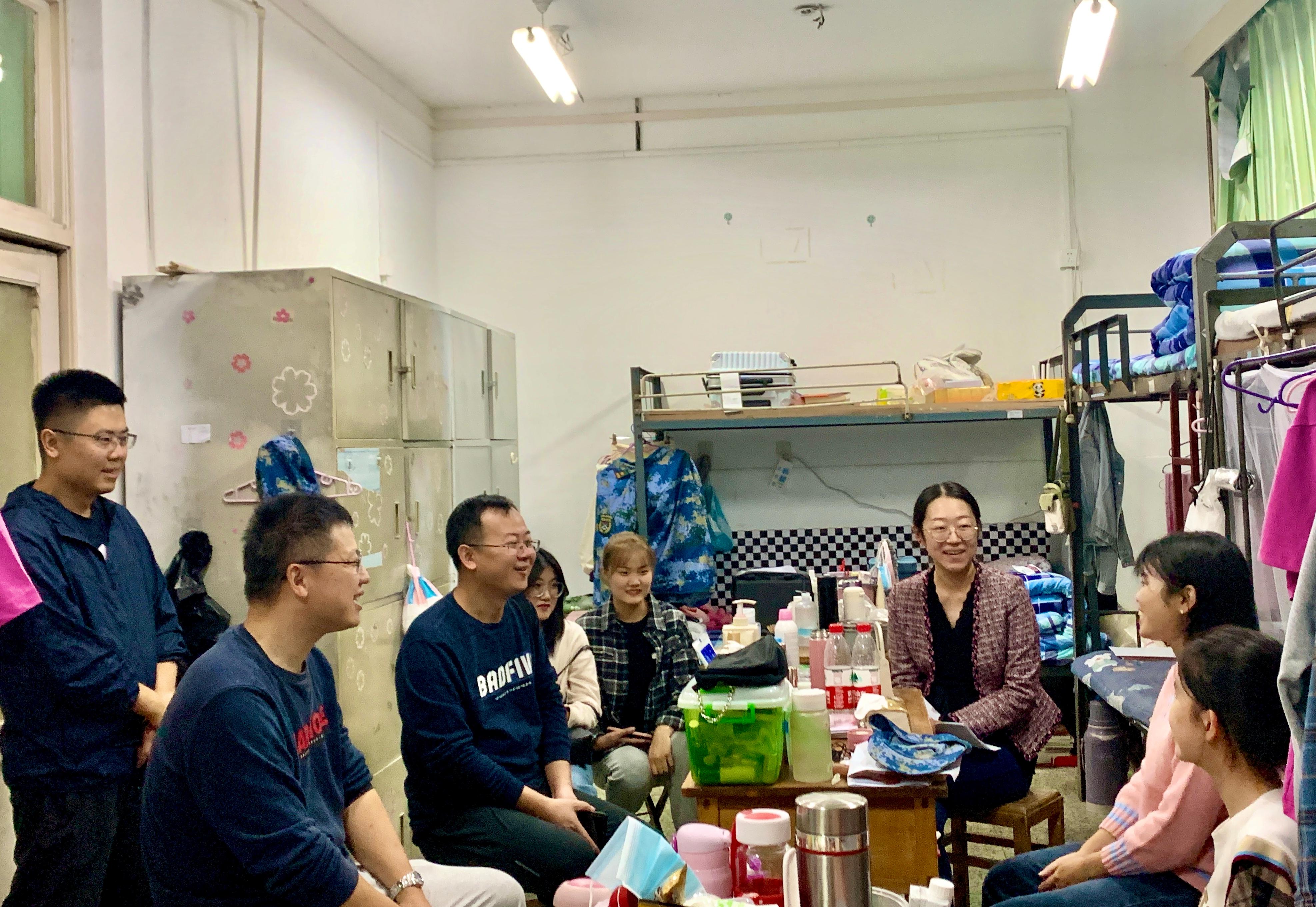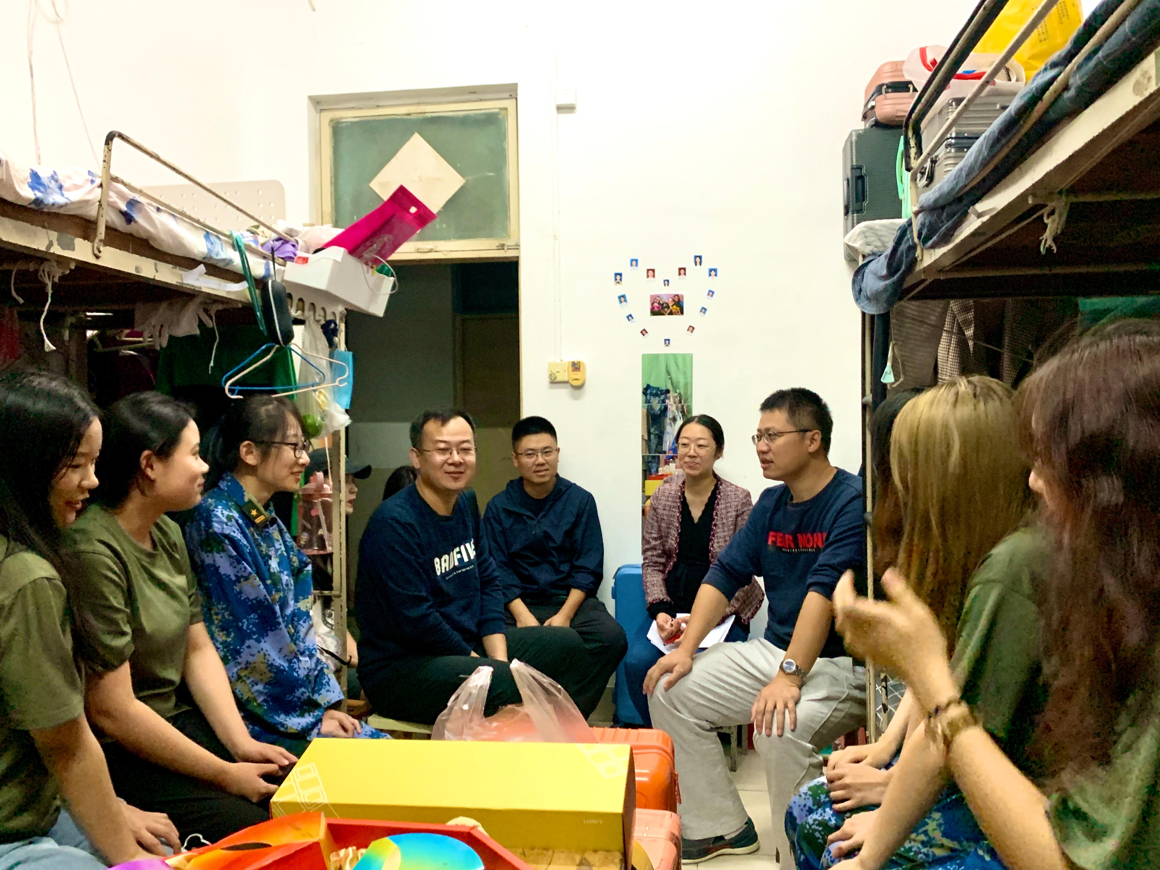 党委书记刘振,党委副书记、副院长袁海占带领辅导员到学生宿舍,与学生共度国庆节、中秋节“双节”。 为他们送上亲切慰问和良好的祝愿,让离开家乡的学子倍感“家”的温馨和感动。