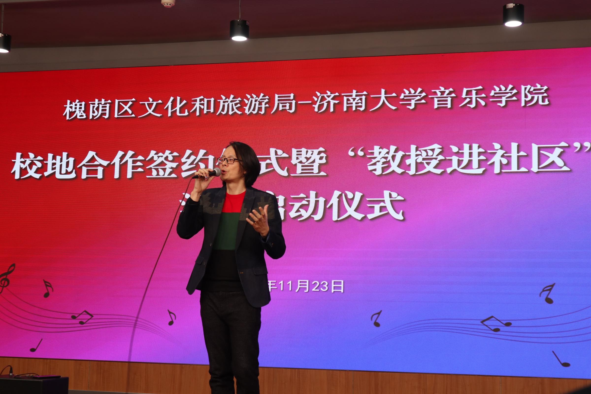 仪式上,济南市槐荫区文化和旅游局局长岳仁强在致辞中对学校表示衷心感谢,他介绍通过校地合作开展“教授进社区”活动旨在加快实现槐荫“文化兴”,由香港三级片