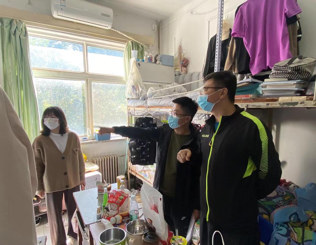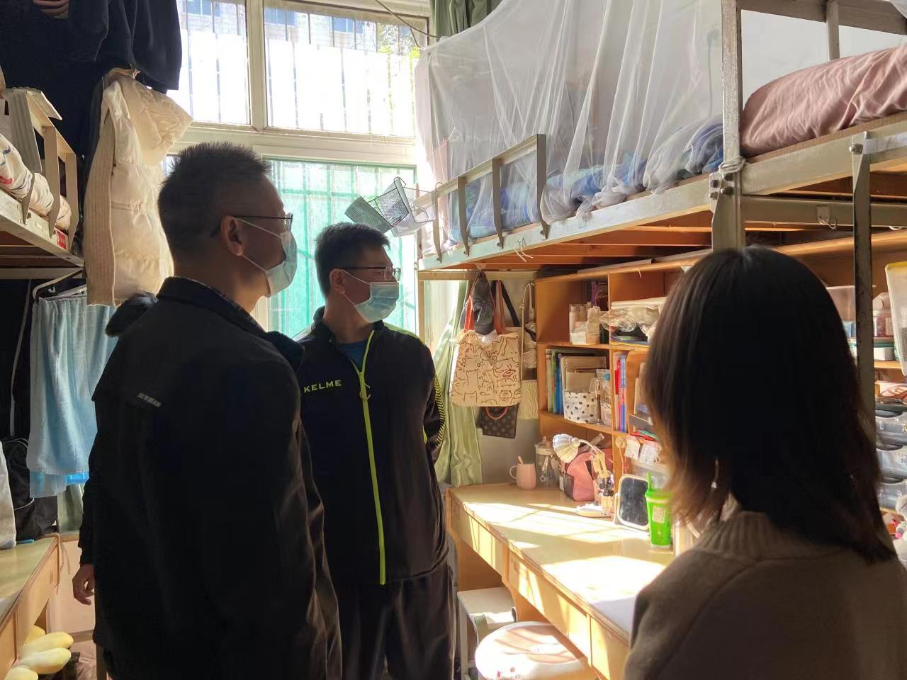 党委书记刘振、党委副书记、副院长郝伟及辅导员一行,深入学生宿舍开展走访慰问及安全隐患排查工作。