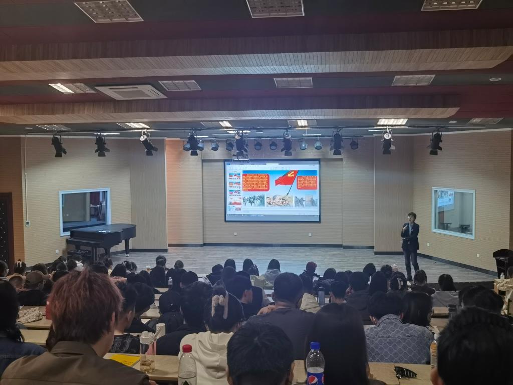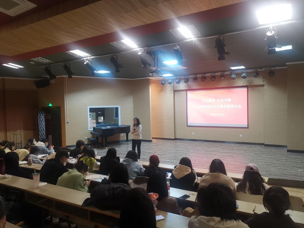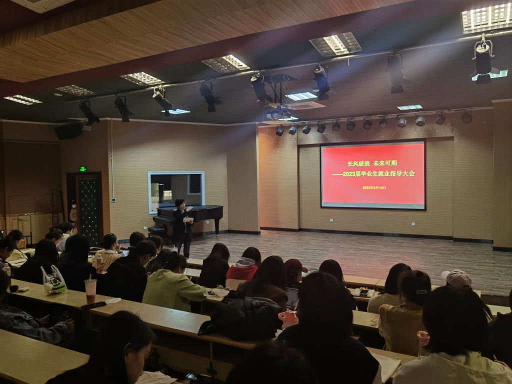 在2J101音乐厅召开2023届毕业生就业指导会,辅导员宋莉璐老师、教学管理办公室冯然然老师和全体2023届毕业生参加了会议。