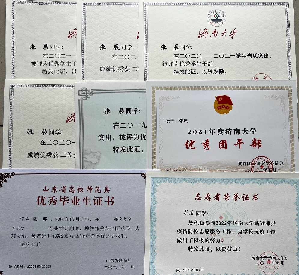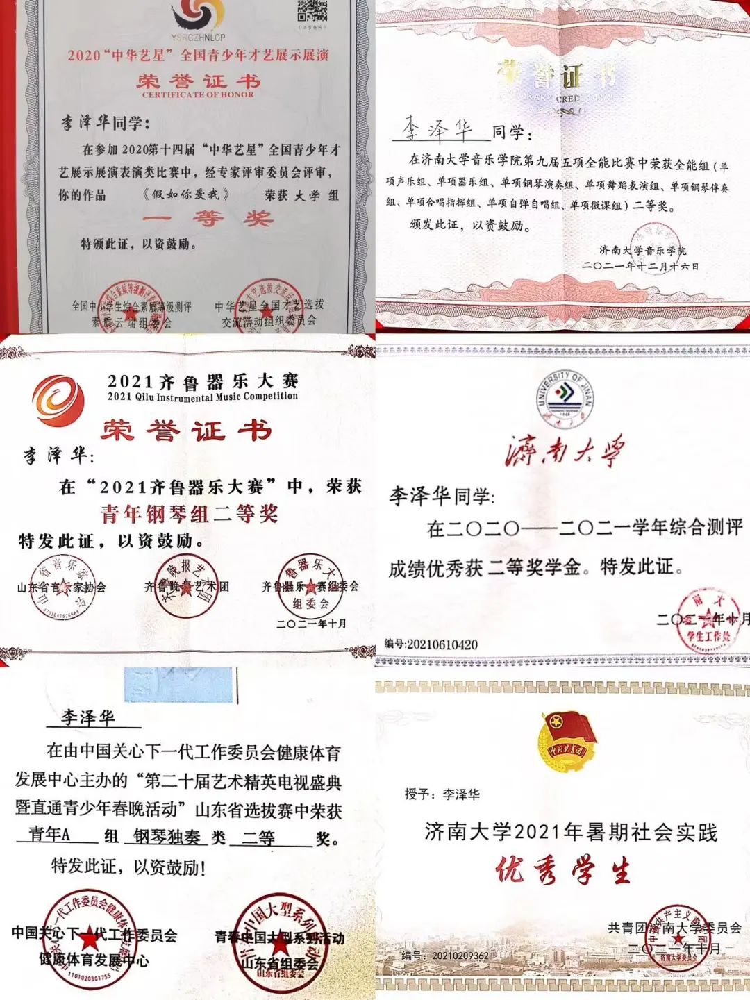 优秀学生干部、山东省大学生合唱艺术节一等奖、齐鲁器乐大赛青年钢琴组二等奖、香港三级片