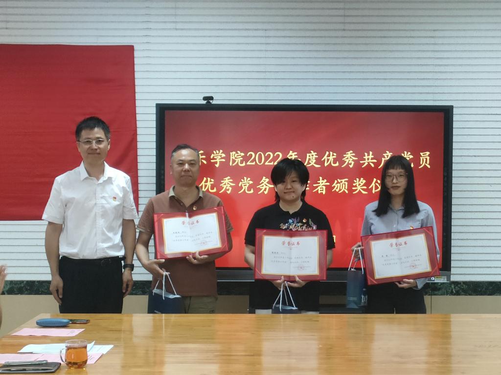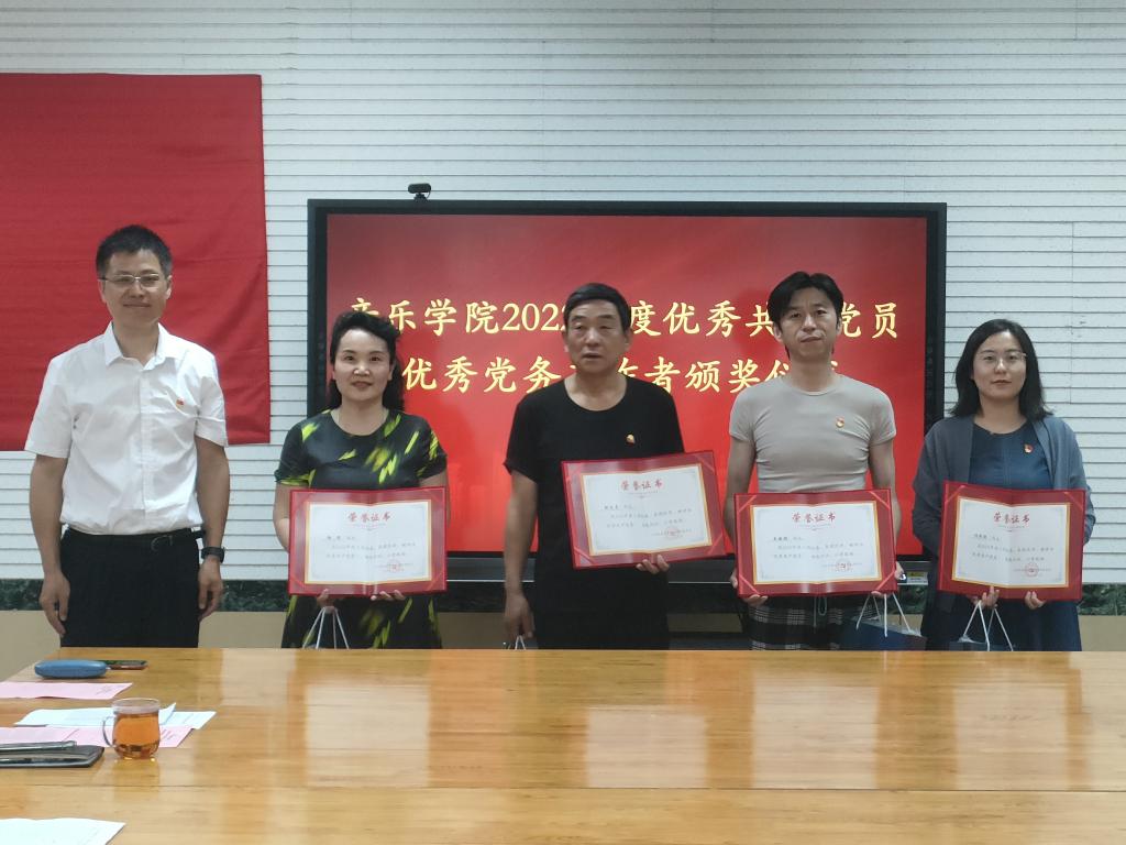 党委书记刘振为受表彰党员颁发了证书和学习用品。受到表彰的优秀党员代表杨瑞和优秀党务工作者代表吴爽分别交流发言,向参会党员讲述了他们立足本职岗位、用心用情用力践行使命担当的先进事迹、分享了在工作学习中的心得,并一致表示作为一名光荣的共产党员,他们将一如既往地履行党员职责,服务广大师生,用实际行动不断践行对党和人民的忠诚。