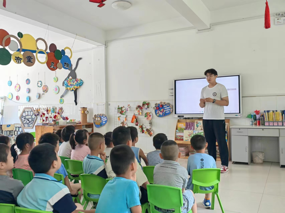 我们永远在前进,用青春画出音符,用汗水奏响乐章。在教学结束之后,志愿服务队举办了教学成果的汇报演出,小朋友们用稚嫩的声音和最认真的态度为大家展示了学习成果。合唱作品《虫儿飞》、《勇气大爆发》以及舞蹈作品《童话梦想家》的完美展现让我们无比感动,志愿服务队带来的器乐合奏《荷塘月色》、小号独奏《主题变奏曲》以及舞蹈作品《藏族舞蹈》也将氛围推至高潮。此次汇演既展现了志愿服务队的教学成果,又给予了小朋友们展示自我的平台。汇演的圆满成功离不开祝阳镇政府和中心幼儿园的大力支持,也充分展现了祝阳镇政府与当地教育机构的深刻联系以及为乡村振兴做出的巨大贡献。