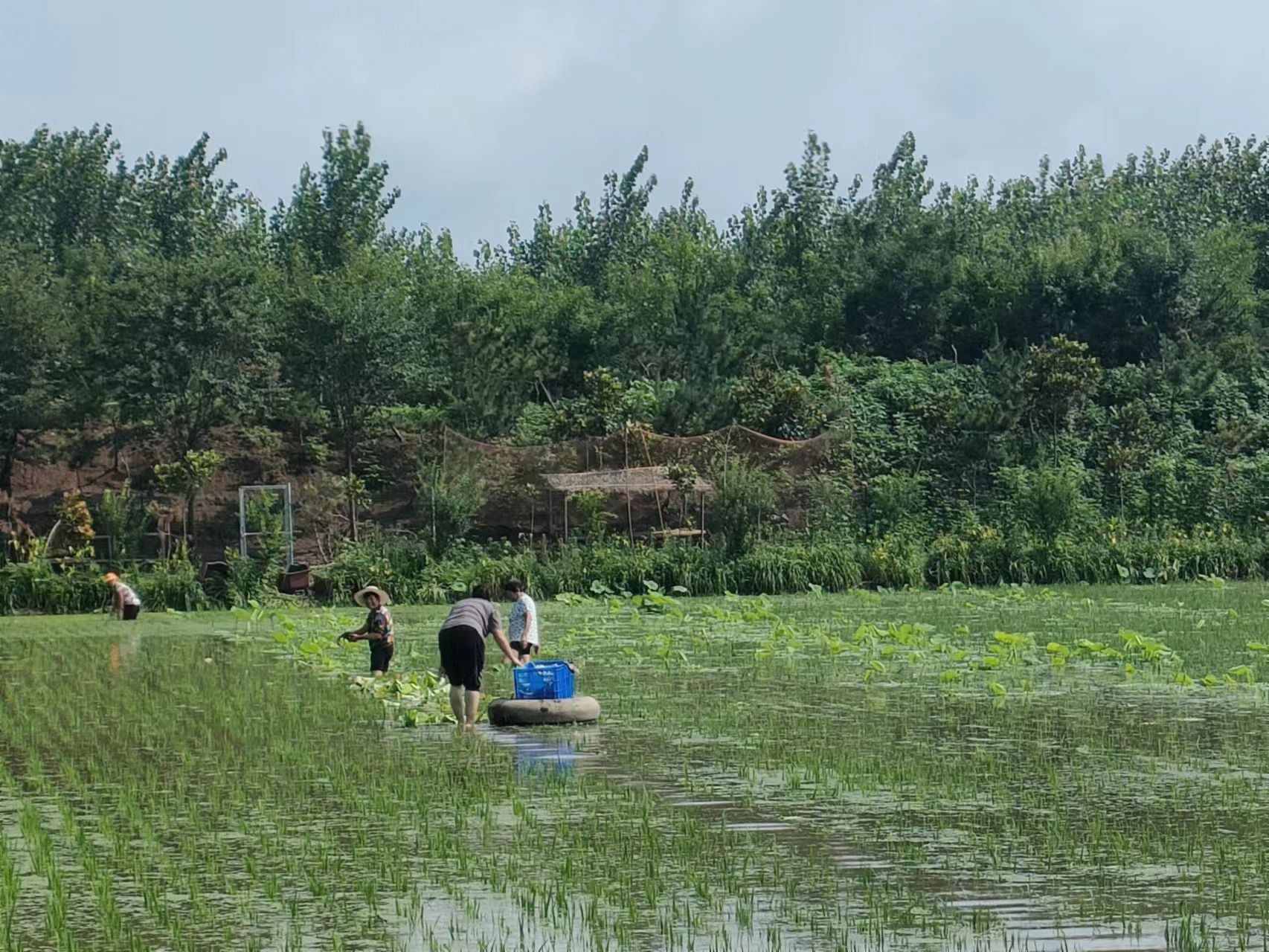 在活动的第三天,我们参观学习了当地高校的农业建设基地。该农业基地属于临沂大学农校对接示范园,园区内包含一体化风车、畜牧养殖基地、生态莲藕种植区等多种农业项目,并以“农校对接”、“家庭配送”为主要输出渠道,形成了良好的生态循环系统,保证了农产品的新鲜度。