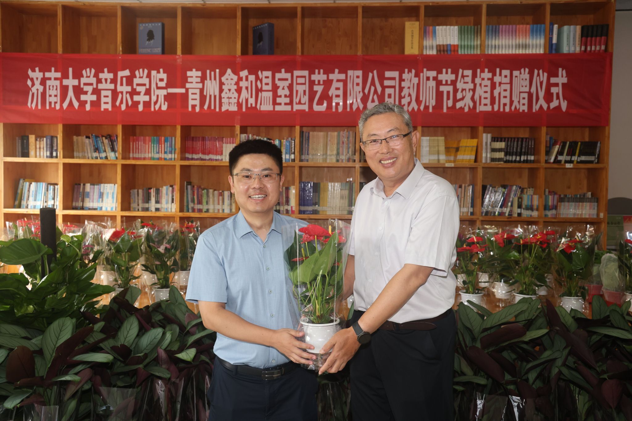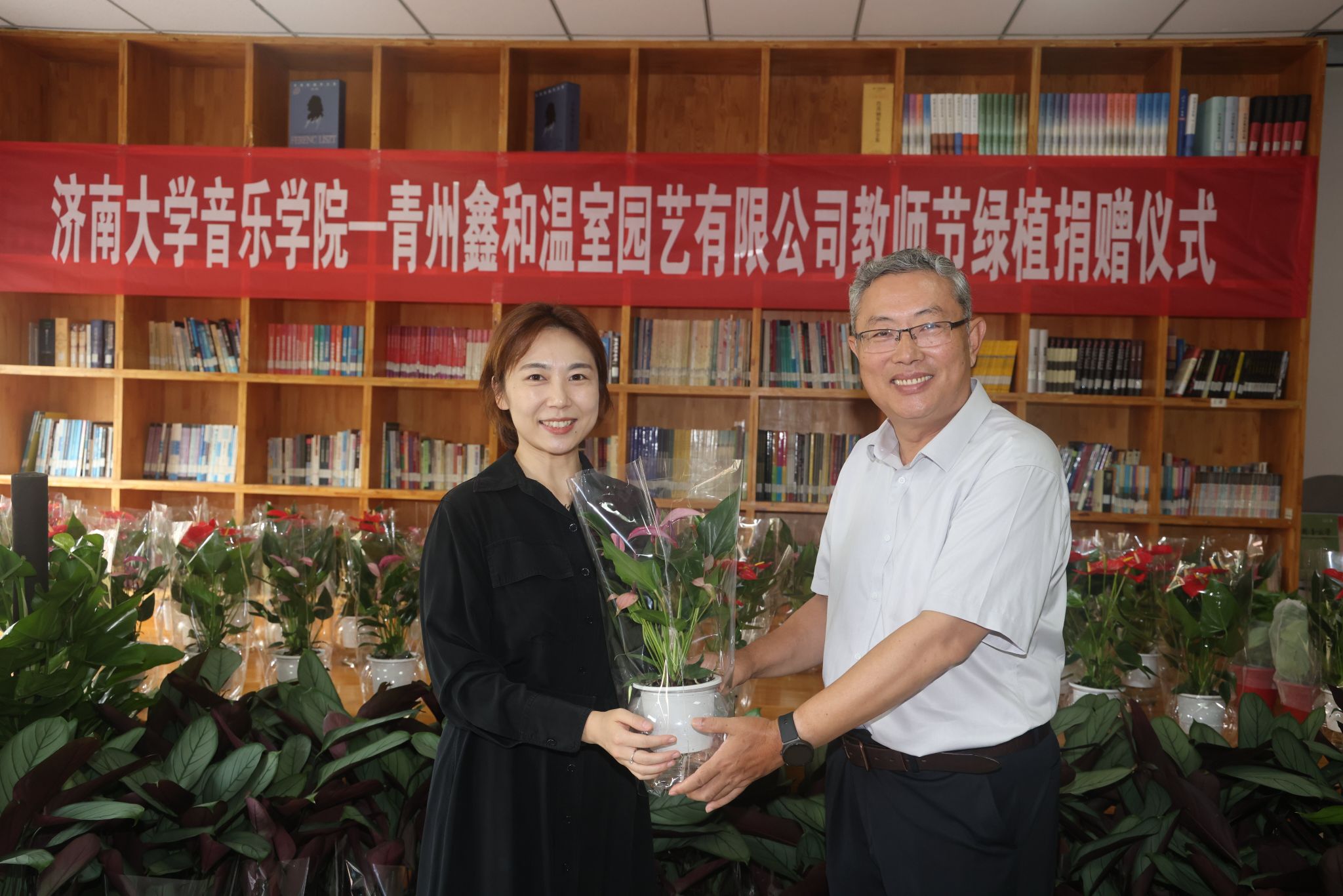 与青州鑫和温室园艺有限公司举行的教师节绿植捐赠暨大学生实践基地挂牌仪式活动,为我们营造尊师重教的良好氛围,激励广大教师和教育工作者积极投身教育强国建设实践,具有十分重要的意义,同时他也通过教师代表向全体教师致以节日的问候。