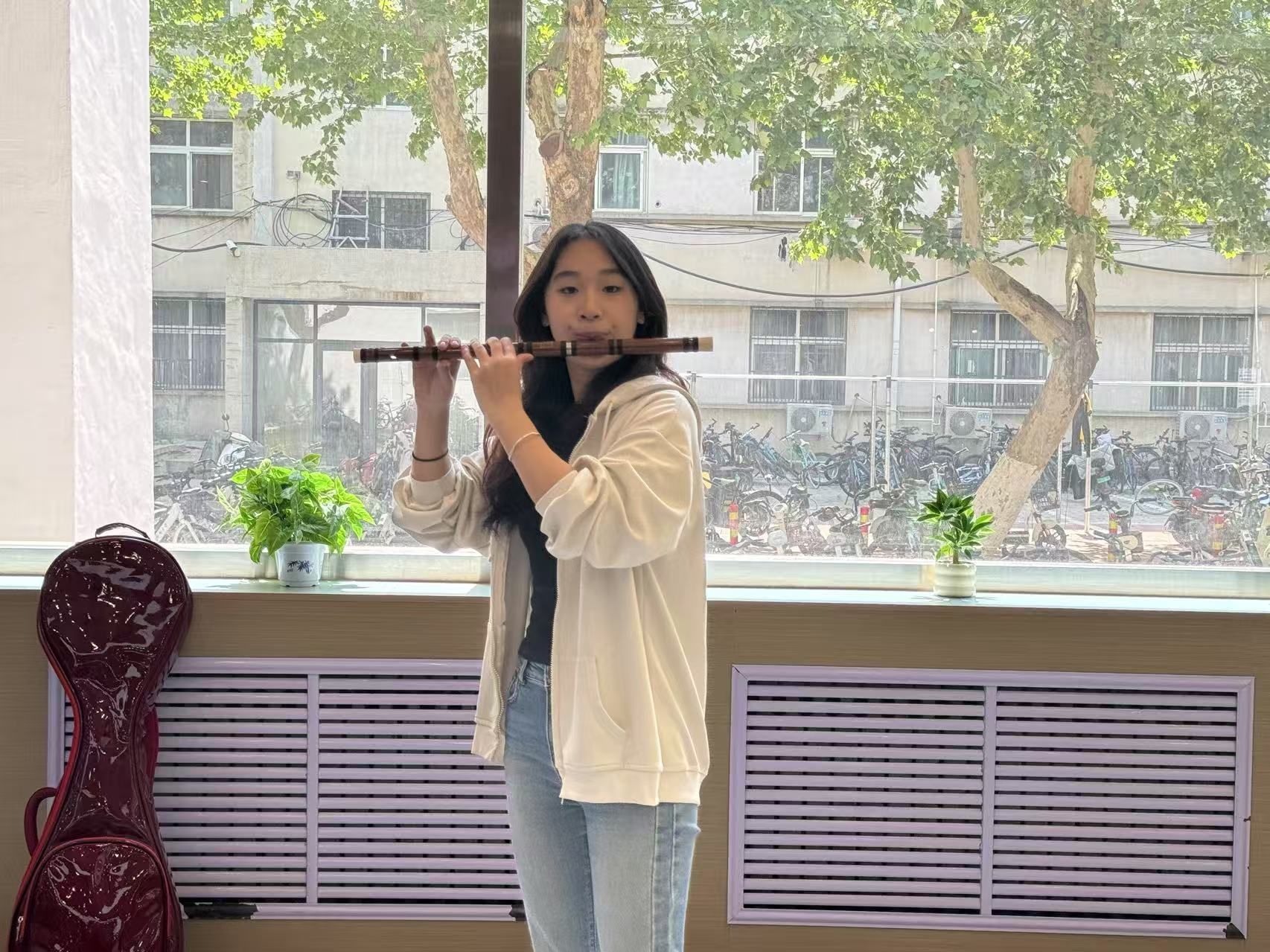 在三食堂美育角表演,刚开始我还有些紧张,不知道大家会不会喜欢这种小众乐器。可每次弹奏时,同学们都会围过来,专注地听,有的还轻轻跟着哼唱。这让我意识到,音乐的力量不在于舞台的大小,而在于能否触动人心。现在我不仅收获了自信,更明白了传承传统音乐的重要性。未来,我会继续用中阮传递美好,让文化瑰宝被更多人了解和喜爱。