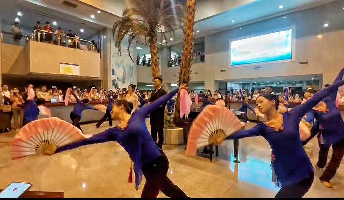 参与这次美育实践,宛如开启了一场穿越时空、邂逅多元魅力的奇幻之旅。排练时我们为一个眼神一个动作反复雕琢,汗水湿透衣衫却乐此不疲;音乐奏响我们完全沉浸其中,舞步与心跳同频,仿佛化身文化传播的使者,这不仅是一场表演,更是民族精神和传统文化的传递。