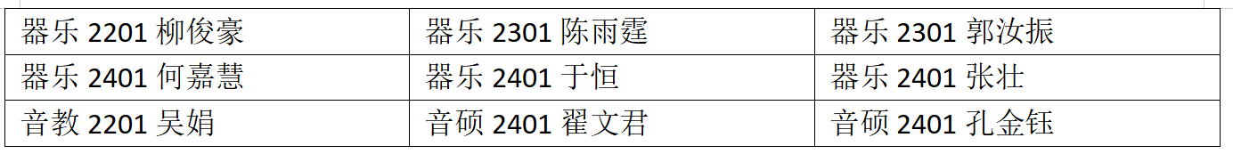 非常开心能够与同学和老师们合作,这次经历对我今后的舞台演绎能力赠予了丰富又宝贵的经验,让我明白音乐可以跨越场景,也激励我在未来尝试更多元的艺术表达,用歌声传递更丰富的情感和正能量。