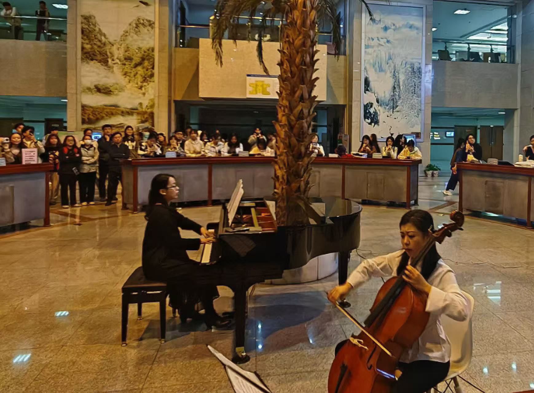 图书馆闭馆秀成为了许多同学结束一天学习的期待,每次演出总有众多同学围观打卡,也有很多老师家属校友特意前来。在宁静的阅读氛围中融入艺术元素,让师生在艺术与知识的交融中感受心灵的舒展与美的浸润,美轮美奂,相得益彰。