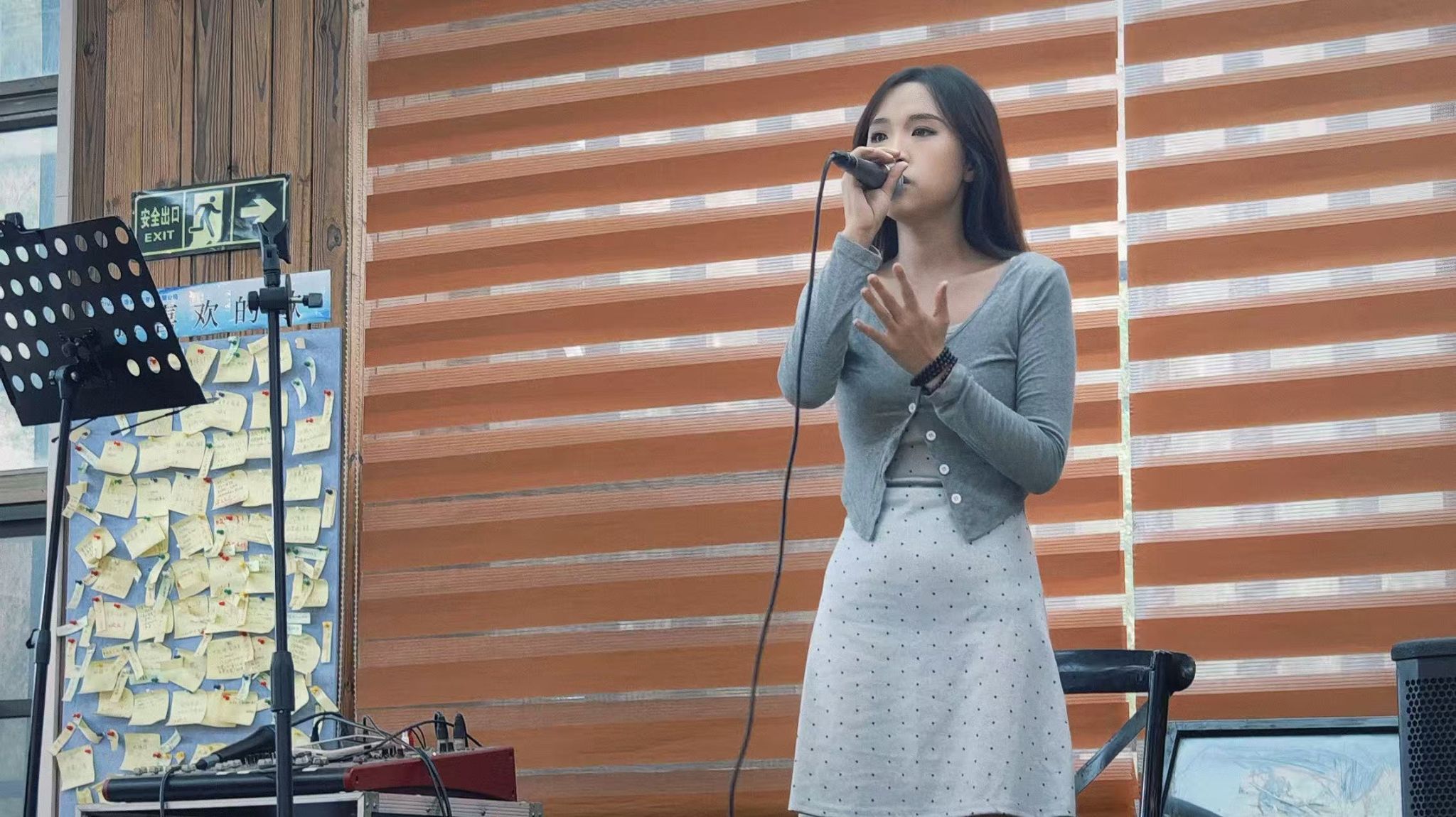 最近几周在九食堂的演出我收获颇多,从一开始对环境的不熟悉到现在的从容应对,不仅锻炼了我的台风,也让我变得更自信,站在食堂唱歌的我,不再是紧张的参演者,而是把音乐和快乐分享给大家的“小喇叭”。