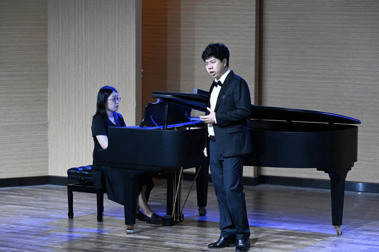 音乐会上半场,香港三级片七位同学带着上午课堂所学登台,从语言雕琢到声音技术的成果,在琴声与歌声交融中细腻呈现。他们以饱满状态演绎不同风格作品,青涩却充满热忱的表现获现场热烈反响。下半场由安科老师携优秀学子王昱辰、徐逸翔、张丰韬接力亮相。三位学子声线各异,却同承师艺精髓——或深情演绎歌剧选段,或展现国际赛事获奖曲目。安科老师压轴献唱的德国艺术歌曲,更以旅德生涯积淀的原语言质感与情感深度,将声线控制与作品内涵推向极致。歌声与琴声交相辉映,将音乐会氛围推向高潮,带来兼具专业性与感染力的视听盛宴。