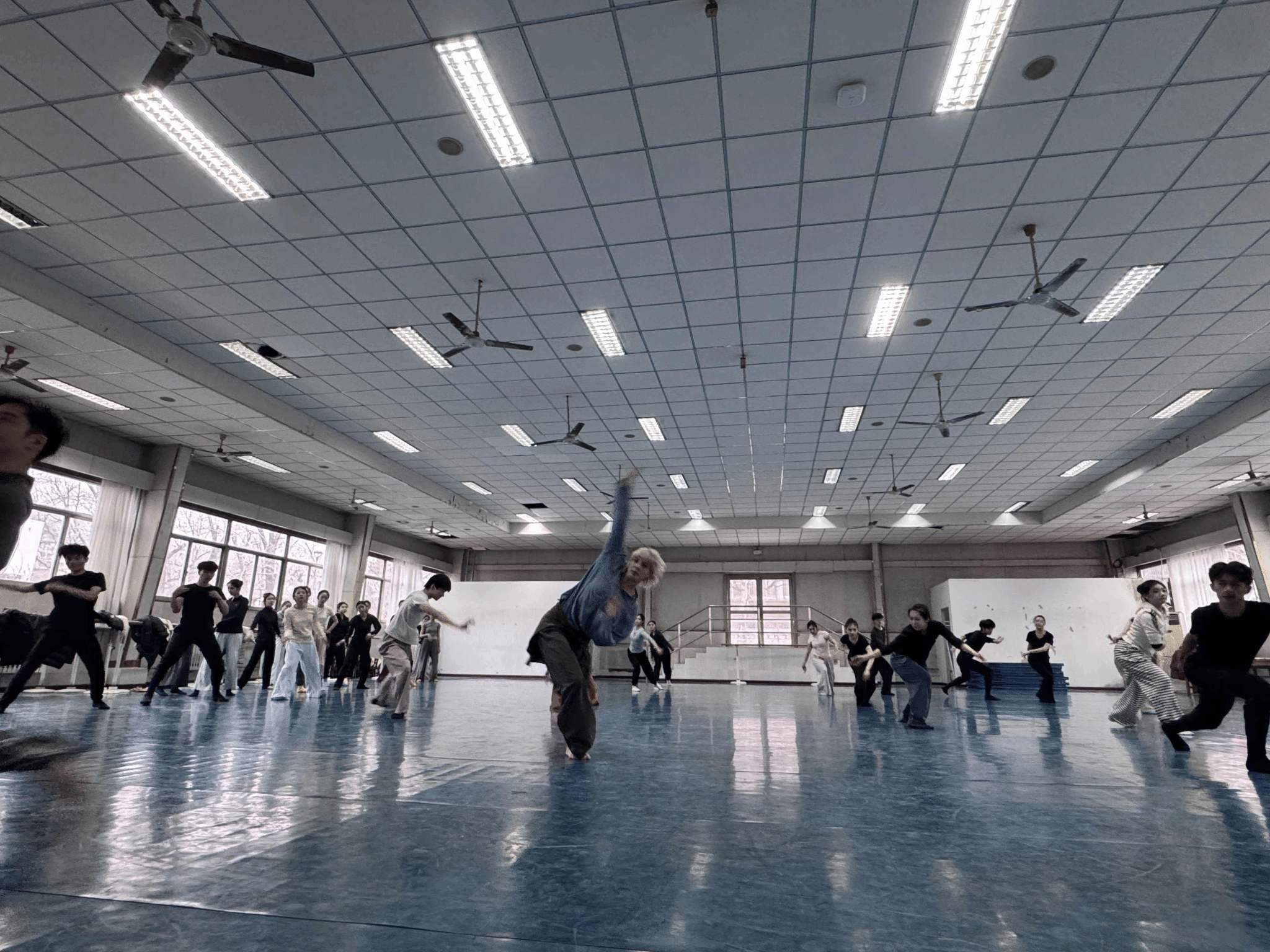 舞蹈系全体教师到场观摩学习,舞蹈系2023级、2024级共35名学生参与现场训练,舞蹈系其余学生同步观摩课程。课程环节中,德国现代舞舞者Eva Schmechtig围绕当代舞技术、即兴与身体等内容展开系统指导;随后旅欧舞蹈家曲嘉男聚焦移动线性空间训练,将现代舞最前沿的技术理念进行深入剖析和解读。