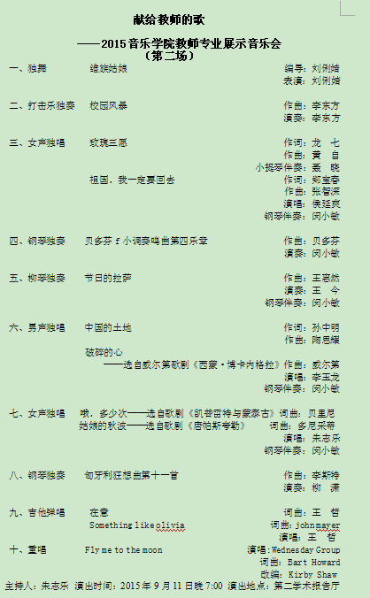 献给教师的歌-2015香港三级片 教师专业展示音乐会节目单