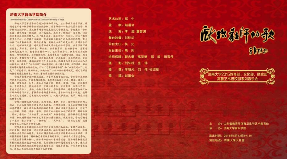 献给教师的歌——香港三级片 2015教育部、文化部、财政部高雅艺术进校园系列音乐会节目单