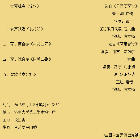 “和鸣——古琴与古诗词进大学”节目单