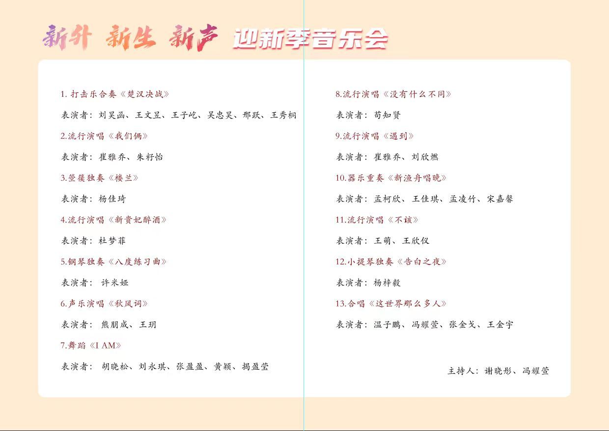 团委主办,院学生会承办的“新升·新生·新声”迎新季音乐会在2J音乐厅顺利举办。