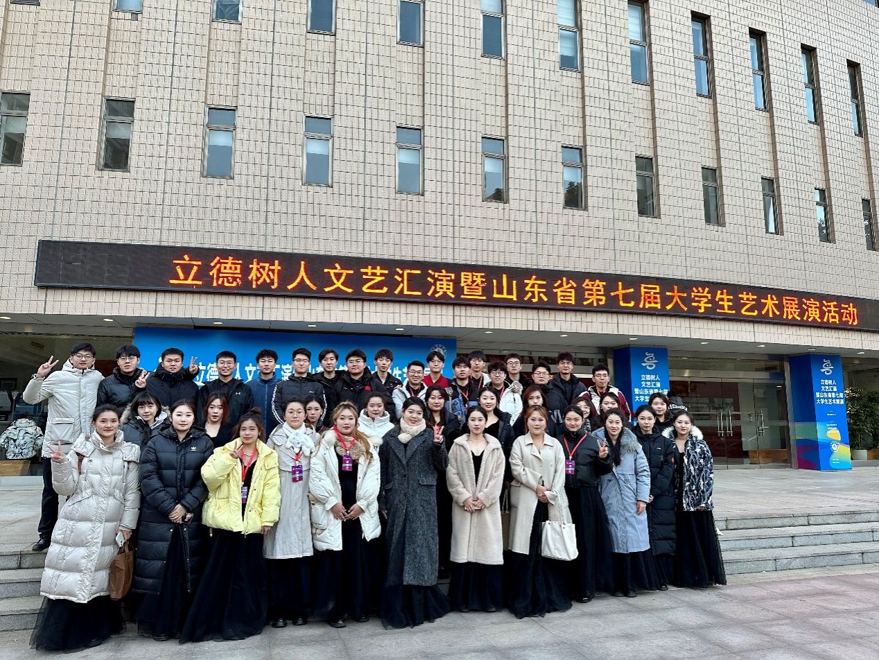 的专业教学水平以及严谨的教学态度,为学校赢得荣誉。其中,田浩、闵小敏指导的合唱作品《我的自白书》《我爱你中国》获优秀创作奖及艺术表演奖一等奖;李展、闵小敏、王建成指导的重奏作品《沂河欢歌》获艺术表演奖二等奖;杨阿红、王海潮指导的舞蹈作品《月出佼人》、《天浴》获艺术表演奖二等奖;杨瑞指导的声乐作品《负心人》获艺术表演奖三等奖。