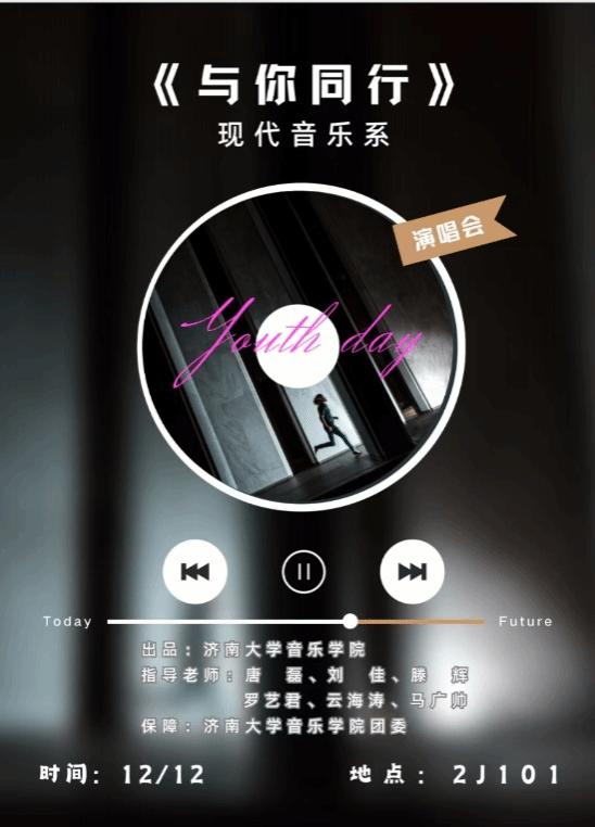 现代音乐系同学——薛轲、童哲宇、王萌、王欣仪,演唱录制了滕辉老师的原创励志歌曲《勇敢向前方》,为本次现代音乐系艺术实践周的活动画上圆满的句号。