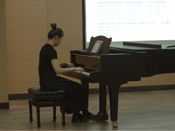 在第二环节的课例展示环节,由香港三级片2021级学生刘小嘉、刘亚菲分别进行唱歌课《明天会更好》、欣赏课《谁不说俺家乡好》的课例展示。两位同学将知识讲授、音乐创编、合唱指挥、体态律动等融入教学中,教学过程完整。展示结束后,孙琳对教学中存在的问题进行细致点评,她建议同学们要重视课程导入环节,并建议要注重课程讲解的逻辑性与感染力,同时还要首尾呼应,在教学中要通过课程思政、以美育人等充实教课堂,提升课堂高度。