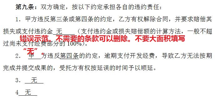 五、其他的格式合同条款涉及的内容,若整条不需要,整条删除;部分不需要,则部分删除,或个别部分填写无。最好不要出现大量的填写“无”的情况。